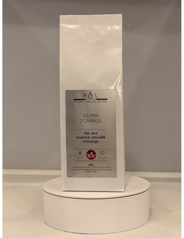 Thé vert Sencha parfumé aux essences naturelles d’orange, accompagné de zestes d’orange et de fleurs d’oranger.
