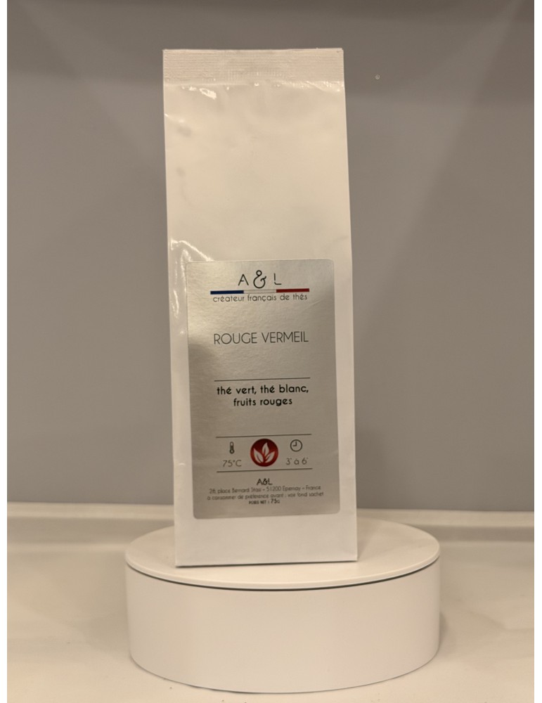 Assemblage de thé blanc et de thé vert parfumé aux fruits rouges et agrémenté de morceaux de framboise.