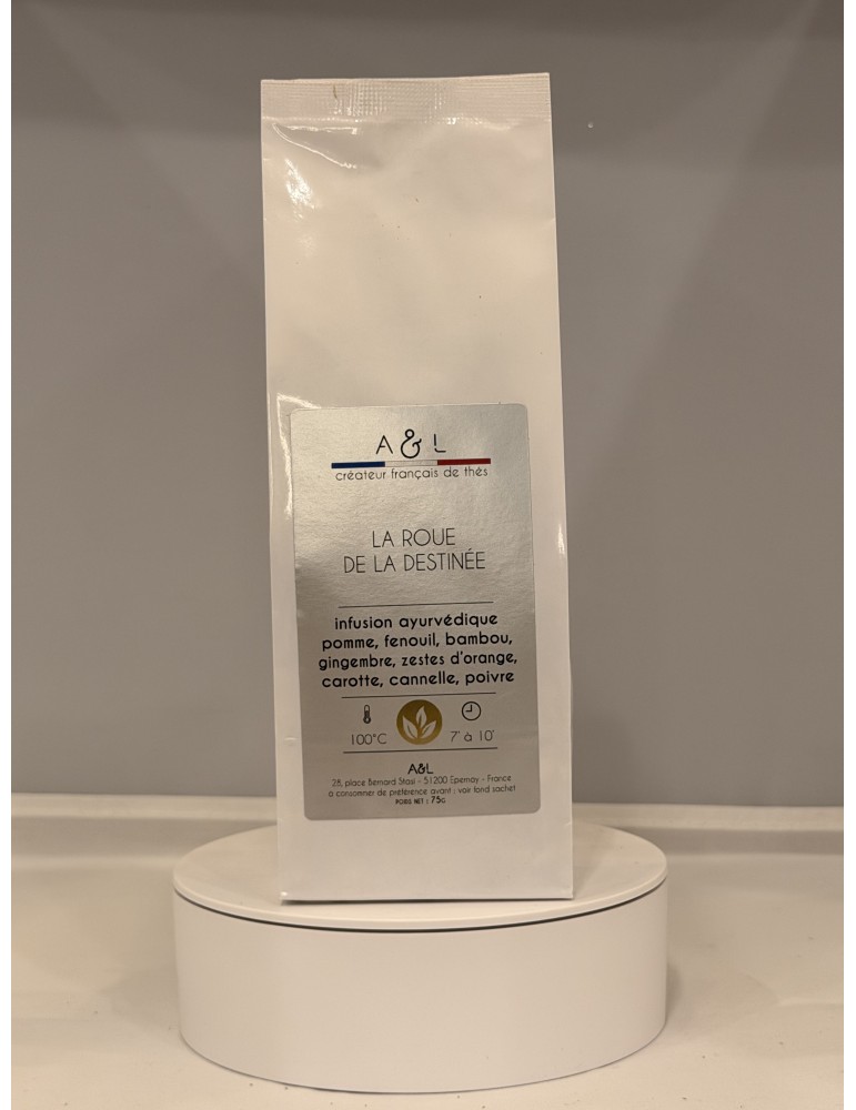De la racine à la couronne, la roue de l'énergie se met en mouvement et, les morceaux de pomme, le fenouil, le gingembre, les feuilles de bambou, le zeste d'orange, des flocons de carotte, la cannelle, le poivre et les morceaux de betterave vont réaliser le mouvement dans l'être entier.