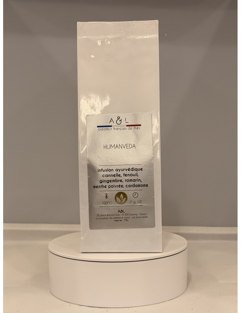Cannelle, fenouil, gingembre, romarin, menthe poivrée, cardamome, caroube, feuilles de damiana, racines de réglisse, feuilles de sauge, poivre noir, clou de girofle, racines de smilax résument toute la puissance de la conception ayurvédique d'une décoction.
