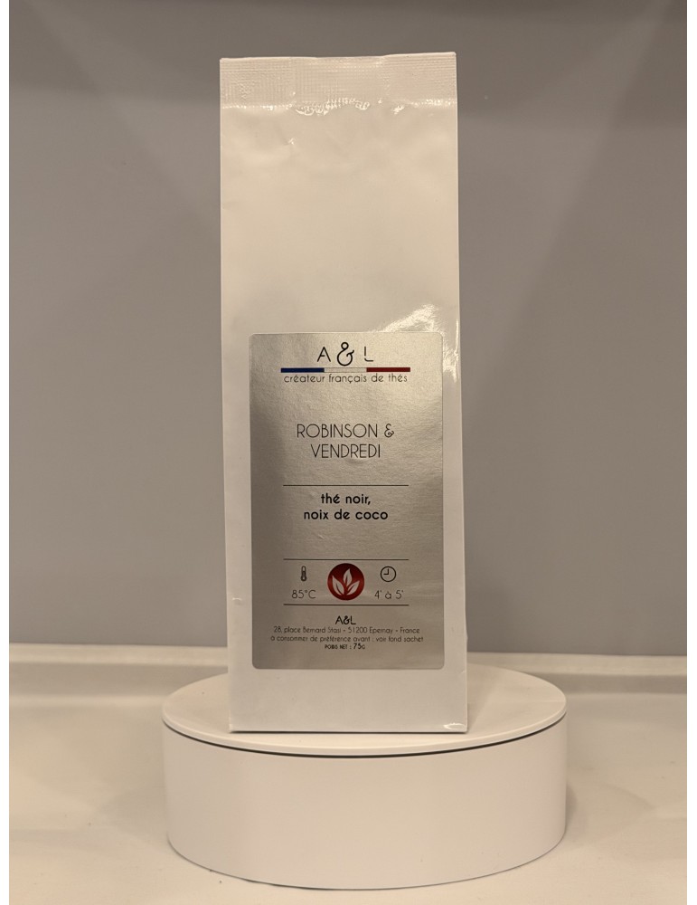 Thé noir puissant délicatement aromatisé à la noix de coco et parsemé de coco sèche. Un assemblage aux couleurs d’île déserte : évasion garantie.