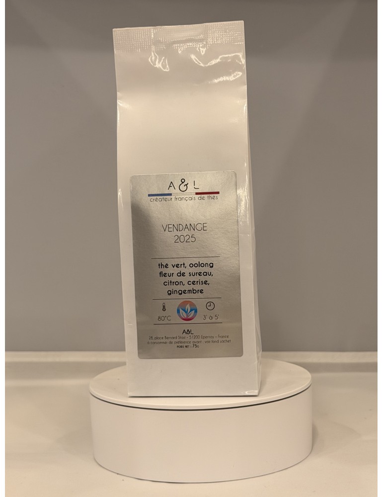 Rencontre fabuleuse du citron et de la cerise délicatement agrémentée de fleur de sureau et d'une pointe de gingembre, pour une alliance thé vert et thé oolong dont la puissance est mise en valeur.