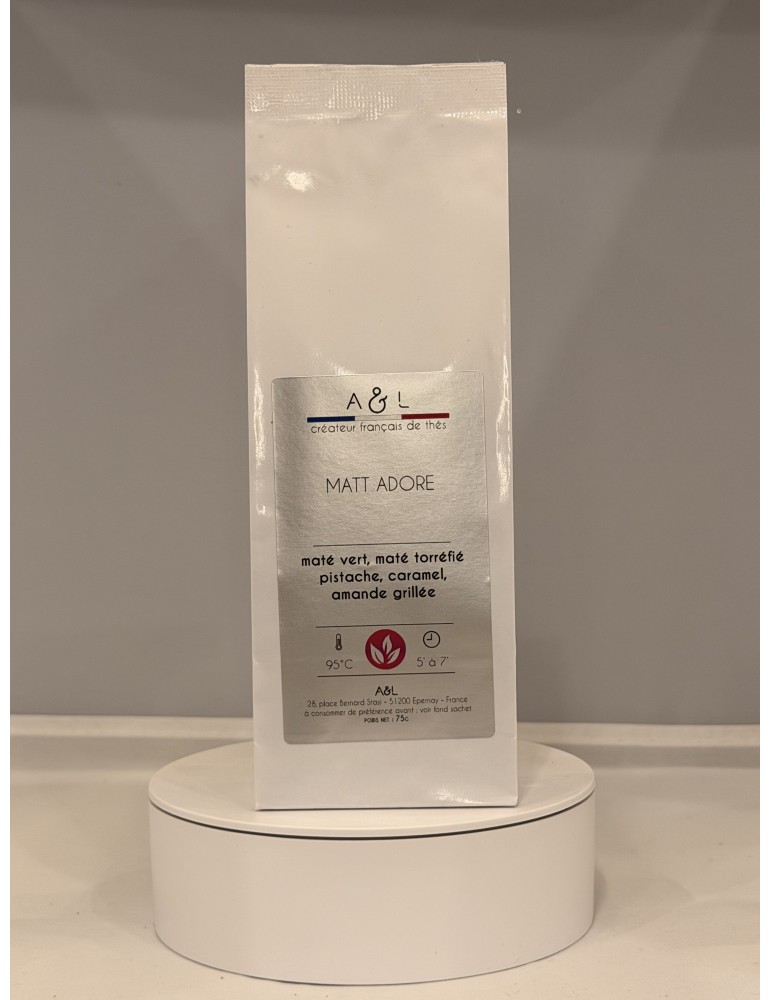 Assemblage de maté vert et maté torréfié, Matt Adore est délicieusement revêtu de notes de pistaches et d'amandes grillées caramélisées.